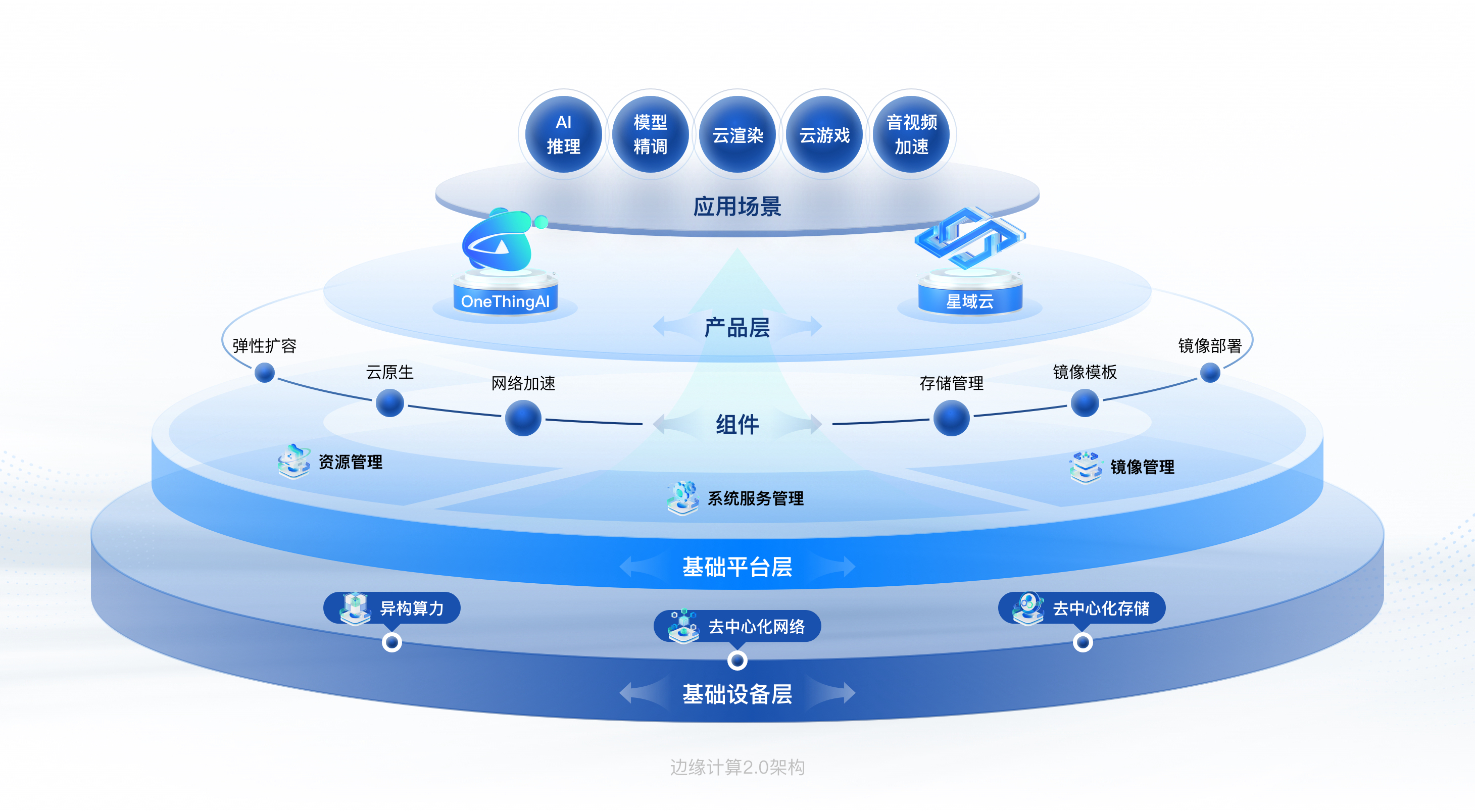 随着智能时代到来,边缘计算会成为AI网络中的核心组成,智能终端、边缘云、中心云协同构建无处不在的智能网络。边缘计算2.0基于超大规模去中心化架构,融合各类分布式异构算力资源,为推理加速,模型精调,音视频加速等各类应用场景给予算力供给能力、模型部署能力、以及快速集成API/SDK的能力,加速AI应用构建及创新,让AI深度赋能千行百业。