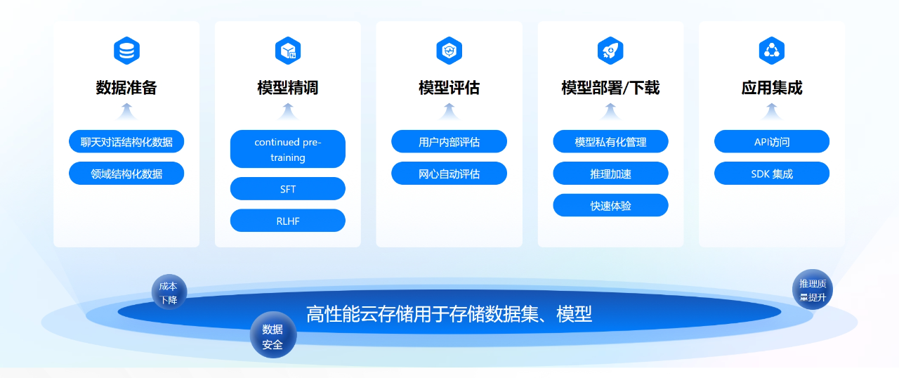 整合异构多层级算力,面向AIGC、大语言模型推理、模型精调等主流应用场景,给予开箱即用的一站式人工智能开发平台,助力企业轻松构建和部署AI应用,成本可减少超过50%,显著降低企业AI落地的经济门槛。
