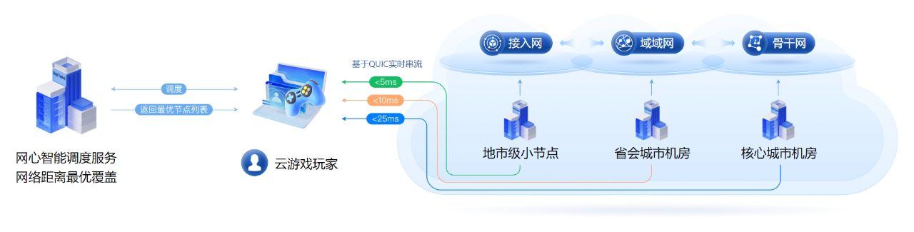 借助海量边缘计算节点与QUIC构建的超低延时RTC优势,充分利用边缘云的就近接入和低延时等优势,全局智能调度,突破用户访问体验差、流量突发平台拓展弹性弱等业务挑战,顺利获得高算力和低延迟传输方案支持各类互动场景,为用户给予大带宽、超低时延的稳定传输,确保游戏体验。