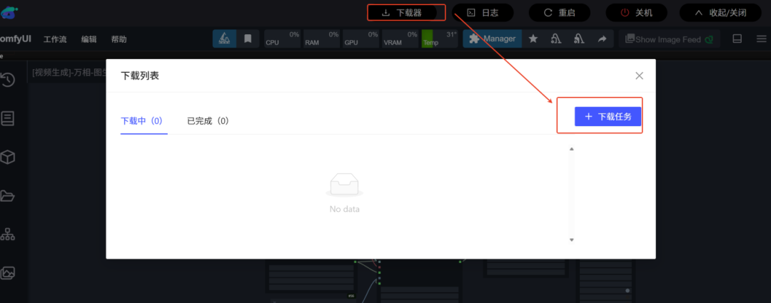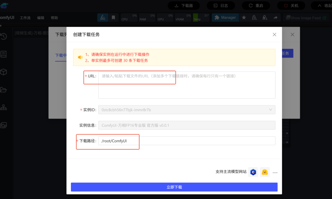 注:以上可顺利获得ComfyUI镜像中的下载器下载,如下图所示