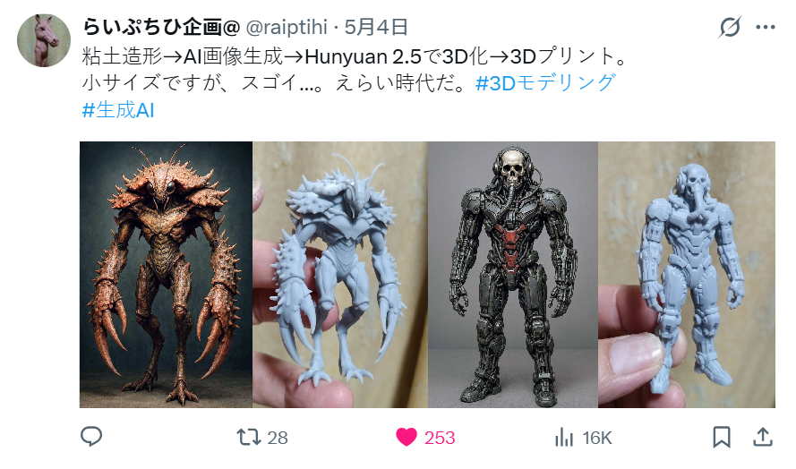 国外创作者更是将它生成的精细模型直接进行3D打印,实物质感堪比专业建模师手笔。