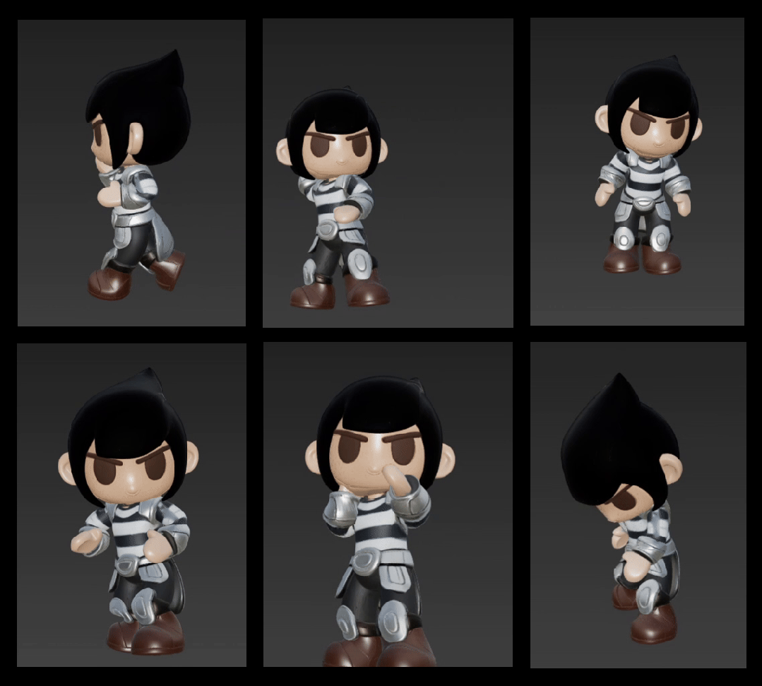 腾讯混元 3D V2.5 模型支持草图、3D 人物及纹理生成,我们试着投喂几张手绘的游戏角色草图,不到 3 分钟就生成了让人眼前一亮的 3D 模型。