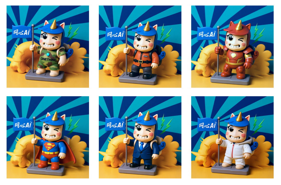 不管生成多少张图,3D风格不断是3D风格,二次元始终是二次元,不会突然改变图像质感且风格还原度接近100%,品牌设计、IP创作超省心。