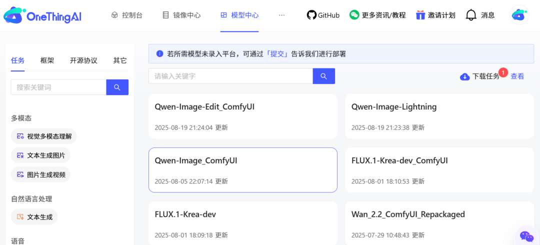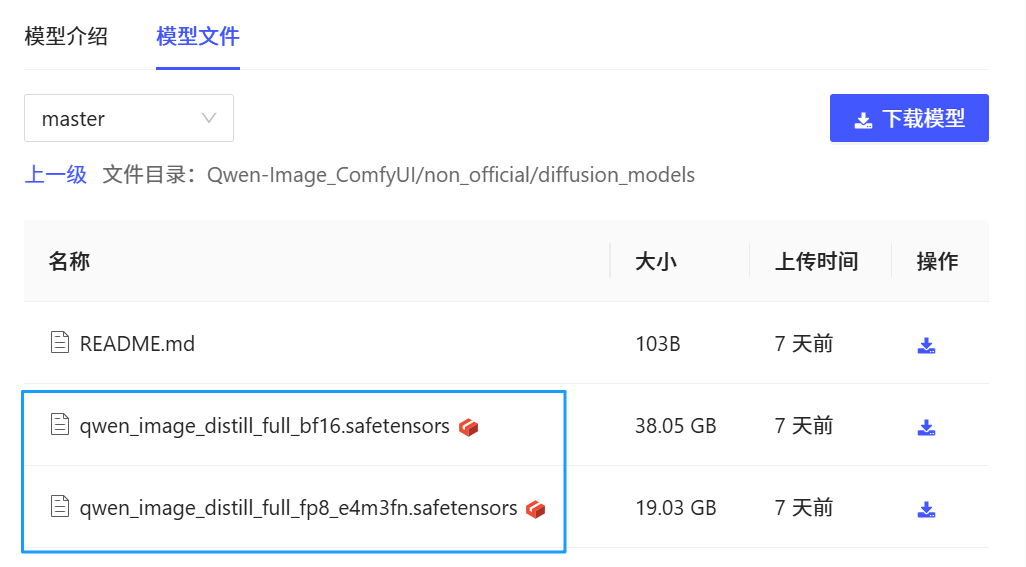 3)将模型中心已准备好的 Qwen-Image 模型文件一键下载到该实例上。