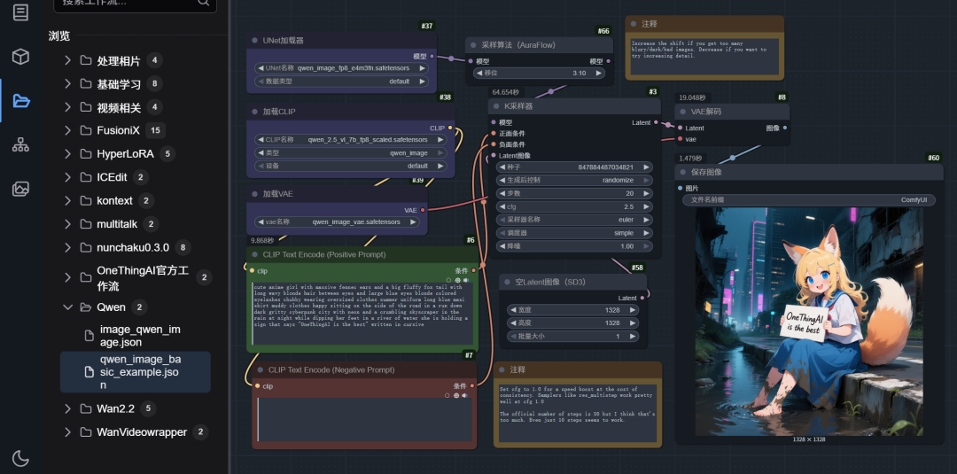 4)运行实例,找到Qwen-Image工作流,即可开始测试。