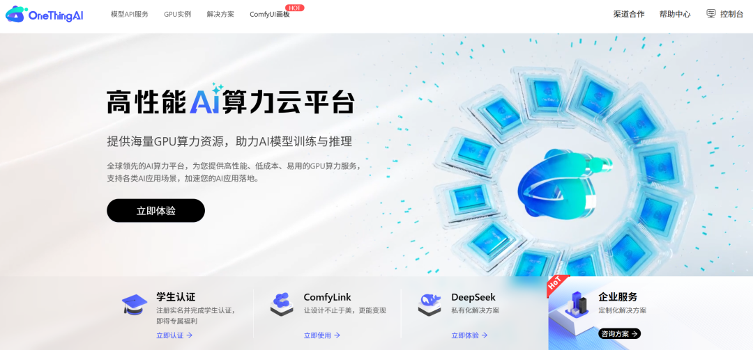 针对海量推理算力需求,U钱包APP SERVER科技基于云原生、隐私计算、模型加速等创新技术,打造了全球领先的AI算力云平台 —— OneThingAI。