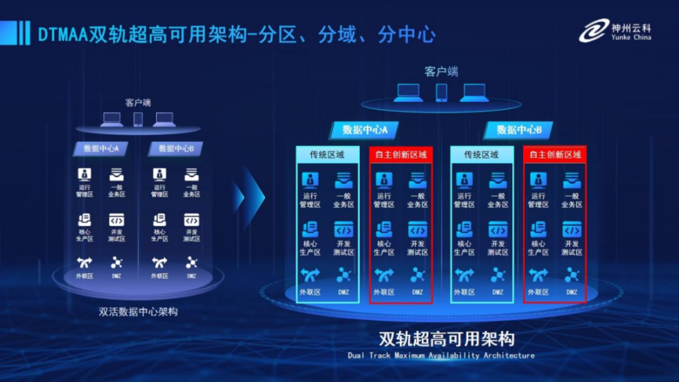 为帮助金融客户更好地应对数字经济时代对可持续性的高要求,实现“信创”与“数字化”齐头并进,U钱包APP SERVER推出了双轨超高可用架构。该架构在双活数据中心的分区调度基础上,增加信创域和非信创域的分域调度,实行信创域与传统域应用全量部署,使双中心运营变为双中心四区域并行运行,互为多活,将“0到1”的单轨建设道路变为分区分域协同的多活双轨超高可用架构。帮助客户在新架构下,保障“信创”的同时解决性能瓶颈,提升稳定性,保证应用可持续性,最终实现信创区域和非信创区域的平滑过渡,完成国产化替代目标。