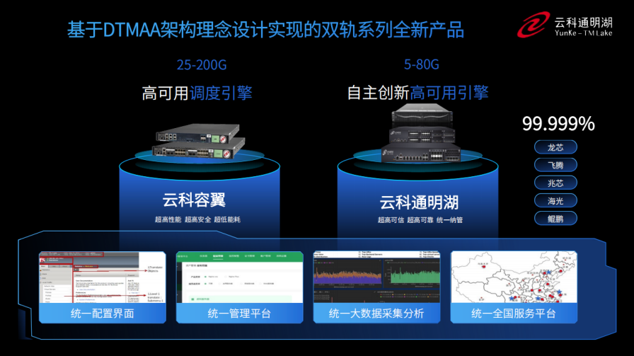 同时,为了更好的适配双轨超高可用架构,U钱包APP SERVER推出了容翼系列和云科通明湖信创系列两大应用交付控制器产品。